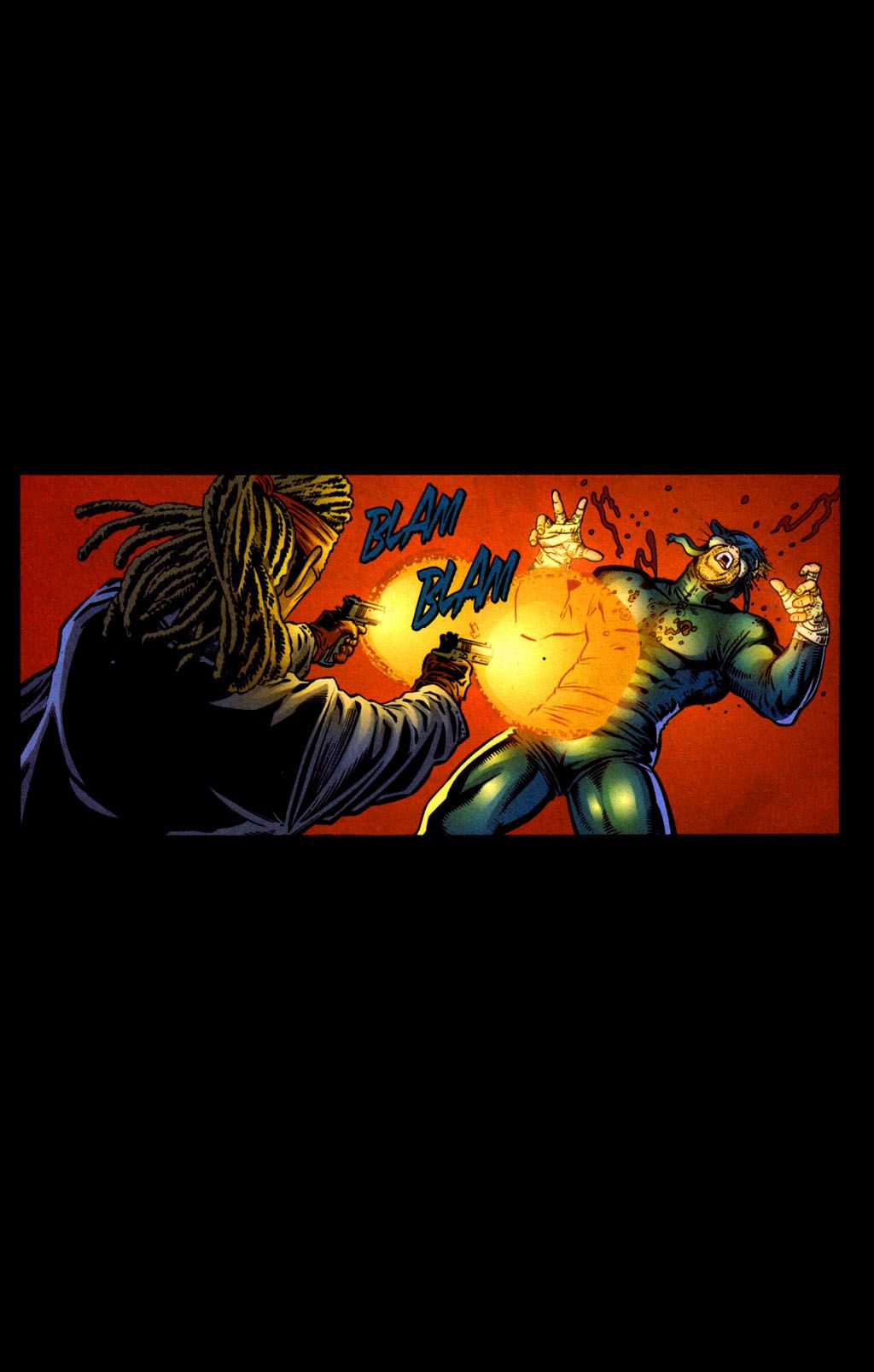 Of course, Wildcat has those 9 cat lives so he pops right back up, only for her to shoot him again. The next time he revives, he and PG manage to escape, only to learn that Wildcat is guilty of framing a guy because he could not prove the guy had committed the murders he had committed. In addition, Power Girl catches a magic bullet and throws it back at the Crimson Avenger. Once she knows what actually happened, Crimson Avenger leaves.