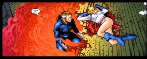 Okay no romance, but definitely action and a little mystery. For those of you not well versed in the history of the JSA or Power Girl and Wildcat in particular, I have the information you need. Power Girl is one of those feminist types that thinks that women and men are equals and Wildcat is a sexist jackass. Power Girl is arrogant and brash and Wildcat is old and set in his ways. When you put these two together you get the woman with Superman-like powers throwing the old guy who dresses like a cat out the window. Due to they’re contentious relationship PG and Wildcat do not often choose to team up, even though they have been on the same team for a long time. So this team up is rare and loads of fun if short.