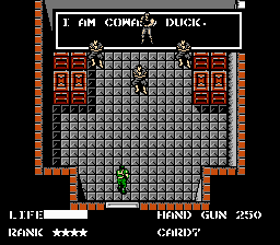 Another big difference is Metal Gear’s focus on story. That is easily the game’s biggest failing and biggest source of unintentional humor. While the story of Metal Gear is actually not bad, its translation was hilariously terrible. Whether it is Big Boss’s transmissions opening with “Snake, I forget to tell you something” or the snoozy first enemy’s admission that he “feel asleep” the game is full of delicious Engrish. I especially like the boss who proudly proclaims that he is the Shoot Gunner. The problem is that the game depends on getting information from various transmissions and the game is translated in such a way to make that much harder than it should be. It is amusing now, with walkthroughs and Gamefaqs, but then it was horrible.