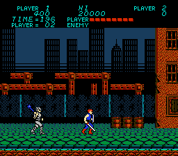 Trojan is a simplistic brawler, with flat plane and very short stages. The enemies come from both the front and the back and seem to spawn endlessly. At first this makes the game daunting, having to deal with attacks from both sides, but I soon realized that as long as I kept moving I did not really have to worry about the enemies from behind. There are also very few enemy types, maybe four random mooks that spawn ceaselessly and another handful of constantly repeated bosses. The player characters shambles across the screen, moving about the same speed as in Casltevania but without the well thought out enemy placement and level design. The A button attacks and the B button raises the shield, while jumping is accomplished by pressing Up. This would be a serious problem it the game required more jumping. As it is I wonder why they included jumping at all. Up jumping really suck in anything but fighting games, and in some of those, it is not ideal. The shield button is as close as the game gets to a nice idea, but it is really only useful against a one or two enemies. Sometimes for reasons I do not know, maybe excess blocking, the player will lose their weapons and be forced to fight with fists for a while. There are only six stages and with a reasonable amount of skill the game can be beaten in less than a half hour. In yet anther strike against the game, there is no continue option when you lose all your men, (When looking up information online I discovered that this is not strictly true, if you press up and start you can continue. However, with no fore knowledge, there is no way of knowing that.) so be prepared to repeat the first few stages until you get the game down. Overall, Trojan is dull and tedious. It is not offensively bad in any way, but outside of nostalgia, there is no reason to revisit it today.