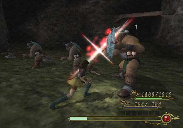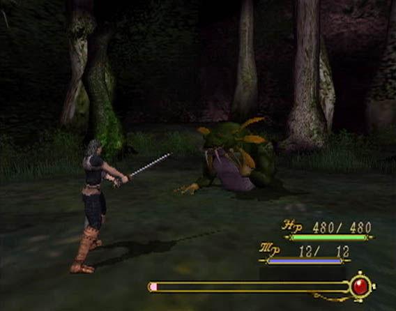 The game falters when it comes to the combat. Since the player only ever controls one character, the player’s party is only whoever Reise is currently possessing. I’m not sure that I’ve ever played an RPG with single character turn-based battles that was not extremely limited, and Tsugunai is no exception. (To be fair the only one I can think of is Dragon Warrior) Cattle Call did try to liven it up at least, but the battle system is still limited and simple. The player has the usual JRPG battle options — fight, item, magic, etc. — as well as a gauge that is very similar to Final Fantasy VII’s limit break. The true attempt at innovation is the involved defense system. By pushing one of the face buttons on the controller at the right time, you can perform one of four defensive maneuvers. X is a simple block that lessens damage taken quite a bit. The square button does a block that stops less damage but fills the limit gauge. Circle is a back step to use against breath attacks and the like. Last of all and most importantly, is the counter, which is done with triangle. It is the most important because the player will be using it against most attacks just to keep the battles from lasting forever. The timing is occasionally difficult, but it keeps the battles somewhat involved, though nothing as tiresome as Legend of Dragoon or Shadow Hearts could be.
