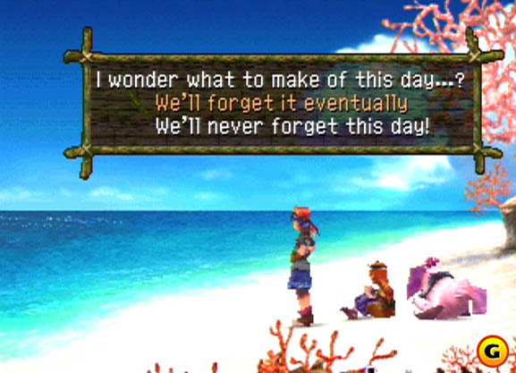 The story, while not as good as the gameplay or graphics, has its moments. Early on it is terrific. It aims for poetic and actually hits it. There are constant references and allusions to dreams and memories and conflating the two, setting up the nostalgic “what is things were different” yearning that is the tone for the game. The dreamlike state, starting with the actually dream sequence at the beginning, never really goes away. The two realities work because one in not wholly better than the other. Serge is only alive in one world, but in his home world nearly all of the Viper Manor characters have been killed. It actually makes it hard to decide which one is the preferable “real” world. When the dragons show up things kind of go to crap, but there are still plenty of great moments. The dreamy-ness of the plot helps excuse some of its shortcomings, but not all of them. The first six or seven hours or so really work well, but after that it kind of sketchy.